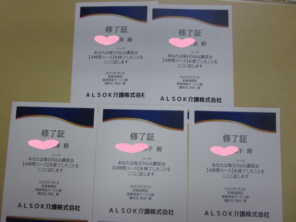 無事に職員5名全員が、毎日NõA(ノーア)講習会