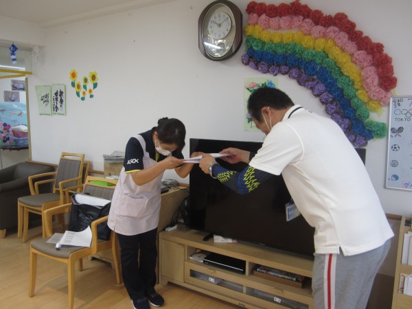2021年7月度、健康体操訪問にて岡田 勝トレーナーが訪問されました(*’ω’*)