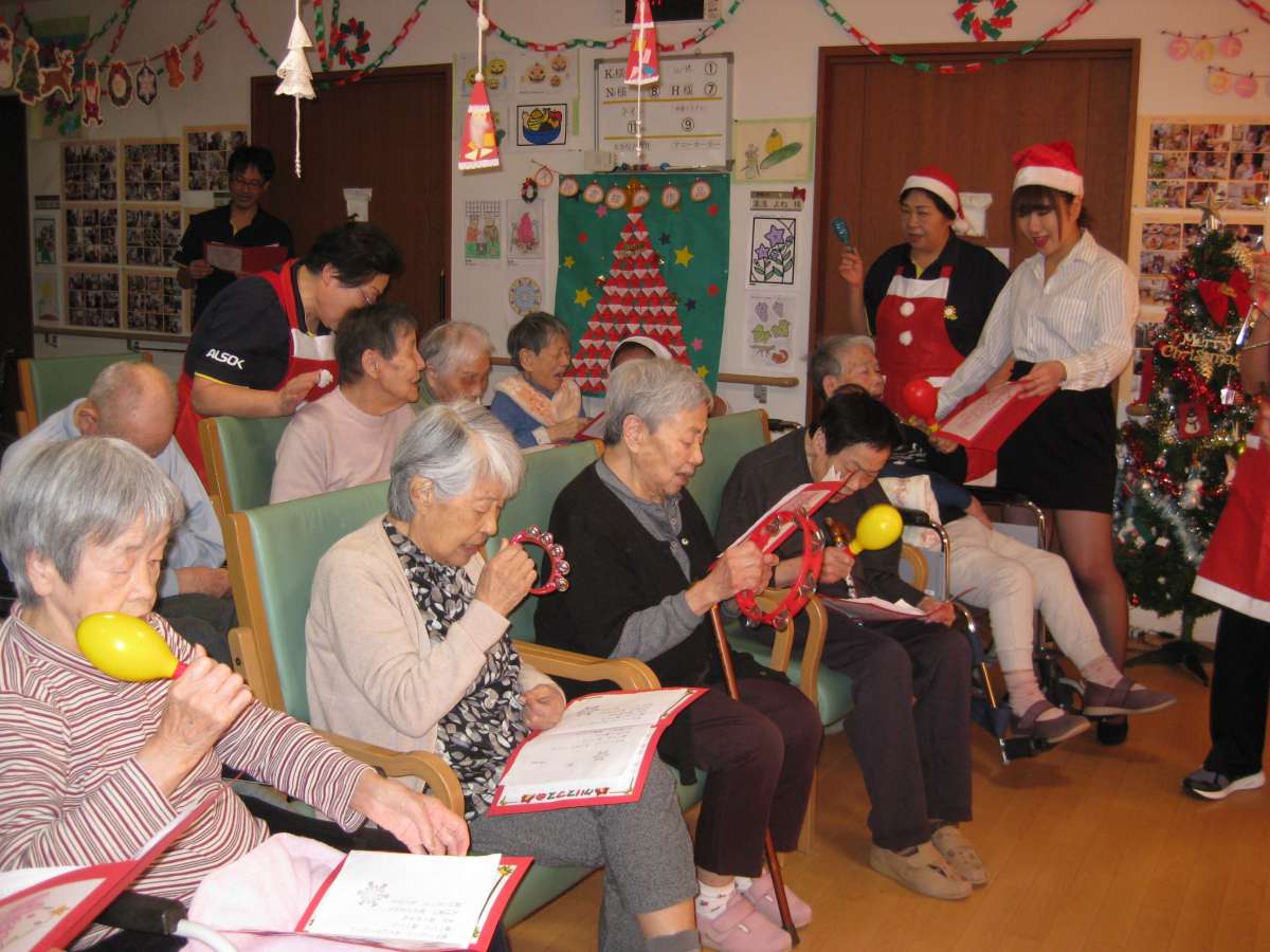 ご利用者様には鈴やマラカス等を持っていただき、みんなで歌いました!