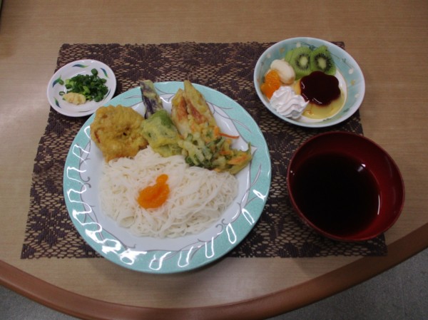 そうめん・天ぷら・プリンアラモードです!