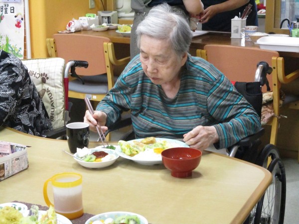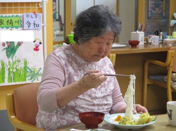 とっても美味しいよ!と嬉しい一言!こちらの利用者様は天ぷらをガブリ!