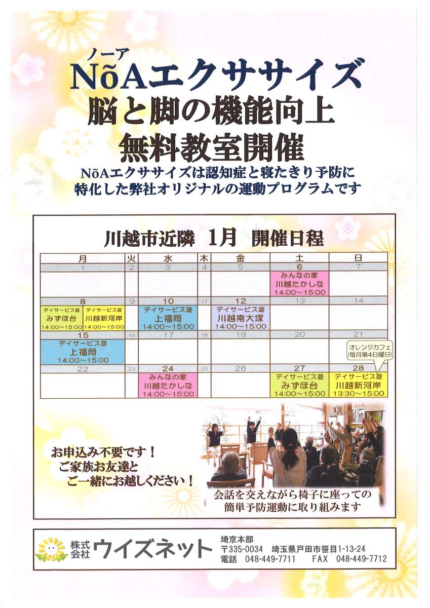 会場:デイサービスセンター遊・川越南大塚日時:1月12日(金) 14:00~15:00