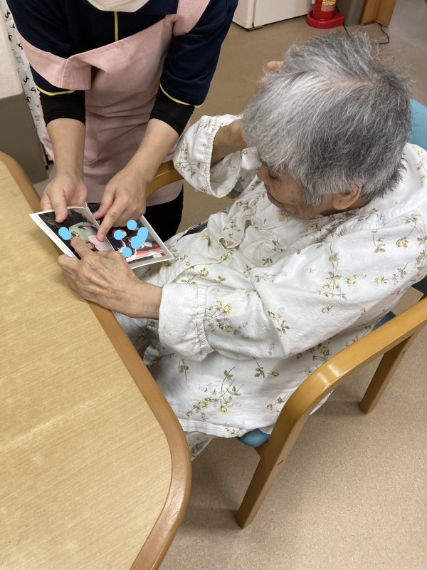 ご本人にお見せすると、「これは主人」「これは息子」「これは孫」「これは私」としっかり憶えておられ、「主人は背が高くてね・・」とご家族の思い出話を色々と聞かせて下さいました(*´▽`*)