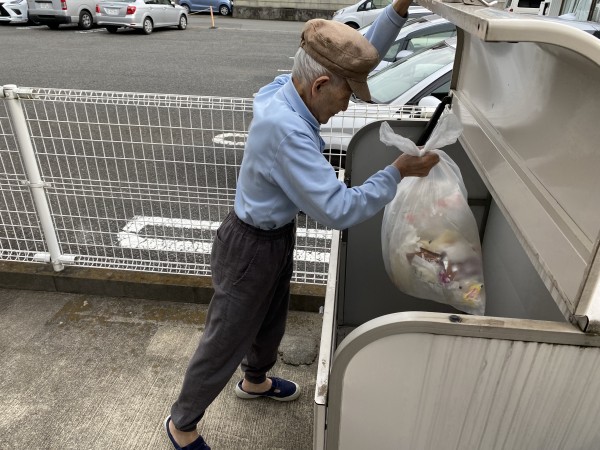 ゴミ出しの後は、ベンチで一休み。
