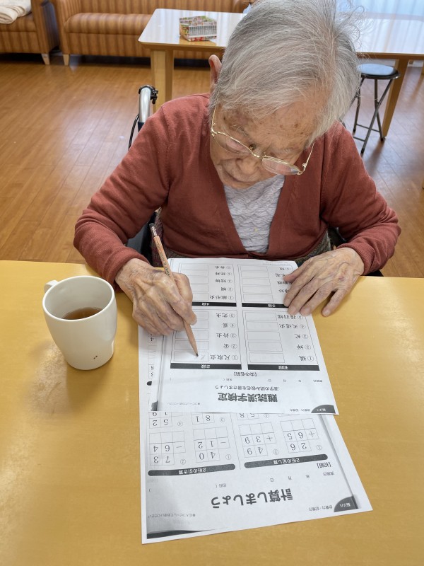 算数ドリルといえば小学生を思い出しますが、頭で考えて答えに導くのですからスゴイことです(*ノωノ)