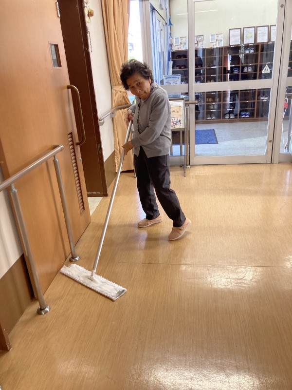 今日の午前,何かやることある?と元気に歩き回るI様(*'▽') クイックルワイパーを持って,お掃除をお願いしました。