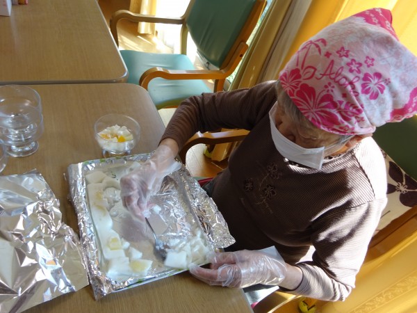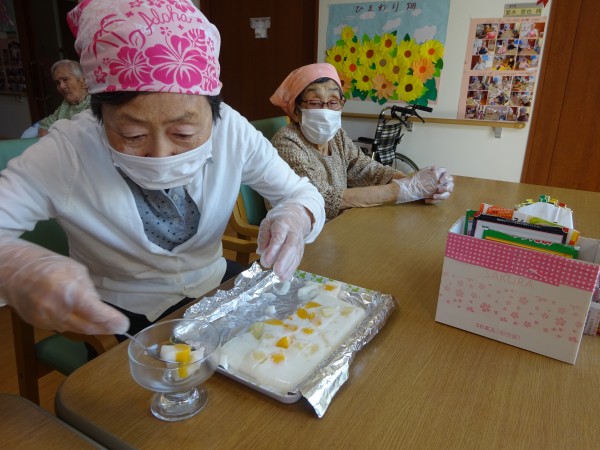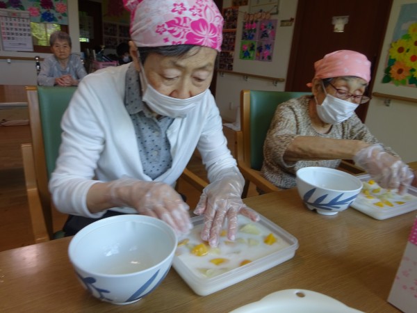 グループホームみんなの家・横浜今宿のおやつレク ~ 牛乳寒天を作りました ~