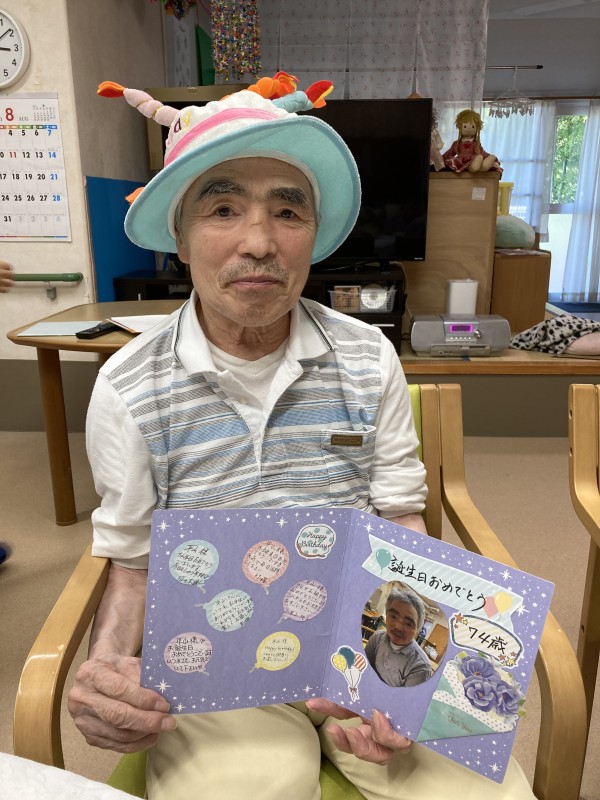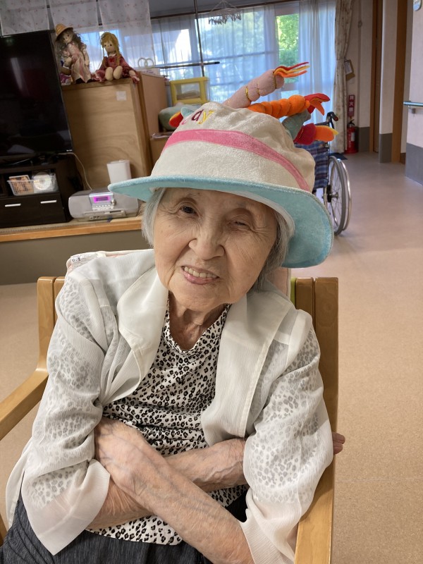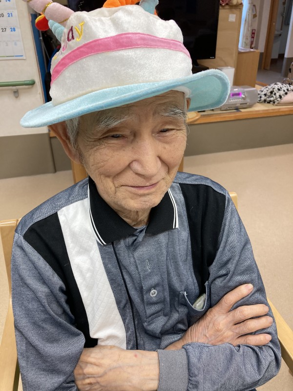 美味しくケーキを召し上がっていただいた後は、ハッピーバースデー用の帽子をお1人ずつ