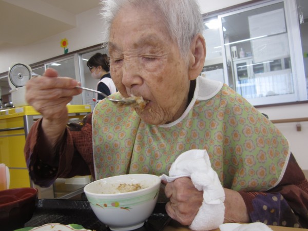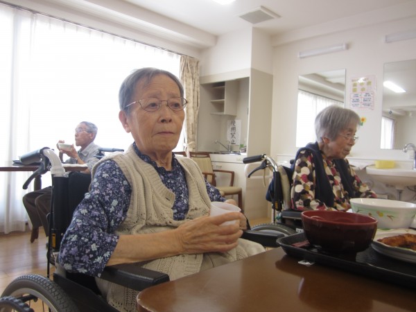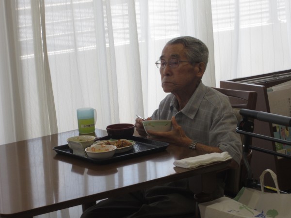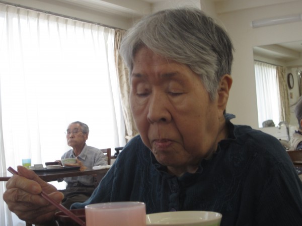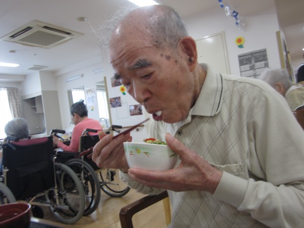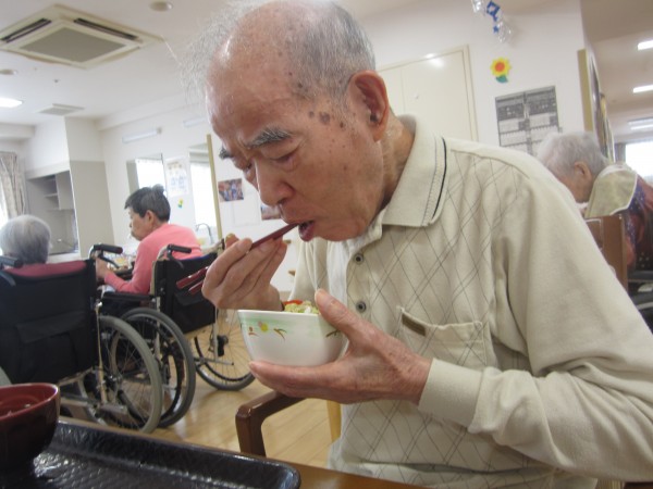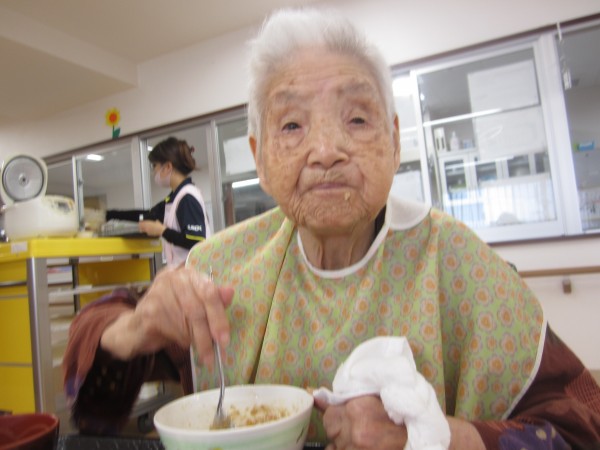 ご利用者様は昼食前の日課のラジオ体操・アルソック『ALSOK』体操・口腔体操後の昼食で、
