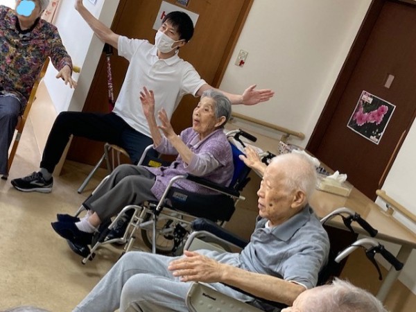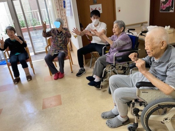 普段はZOOMを使ってリモートで体操をしていましたが先生が来設されるということでみんな元気なパワーをもらっていました!画面越しよりもやっぱり直接行うのが一番ですね!!