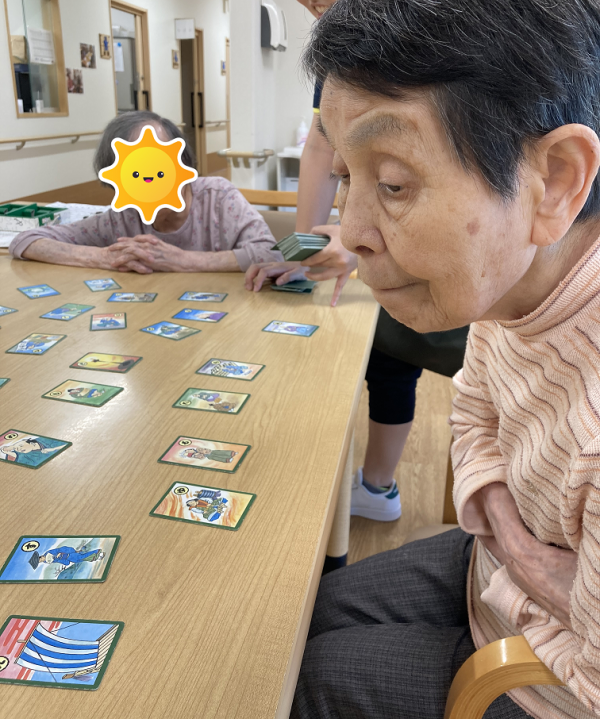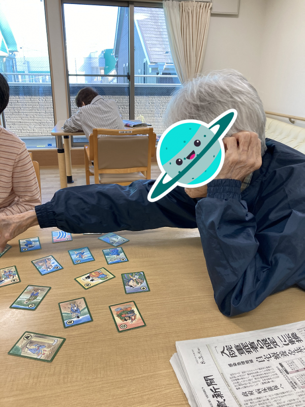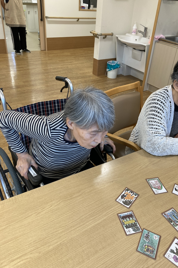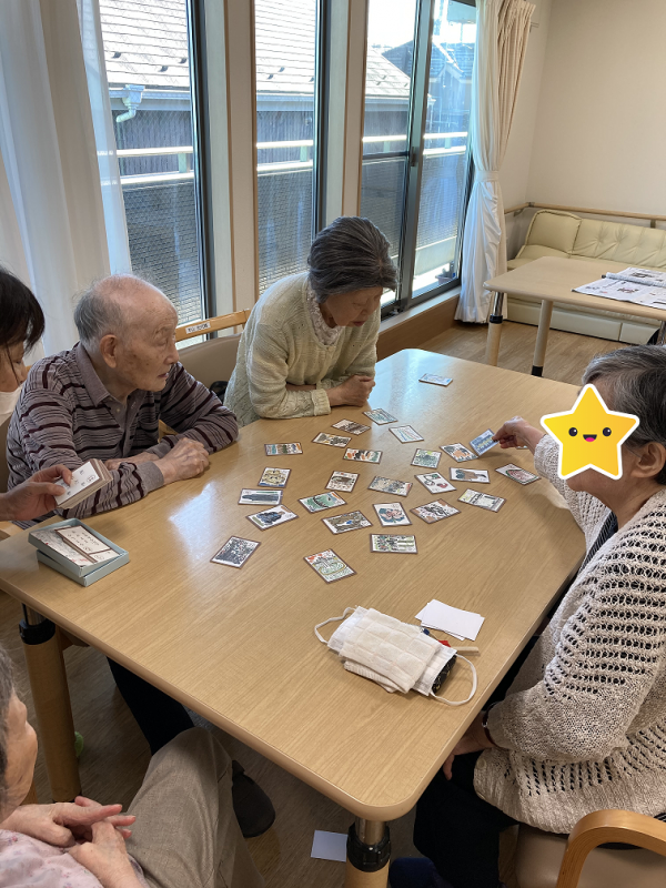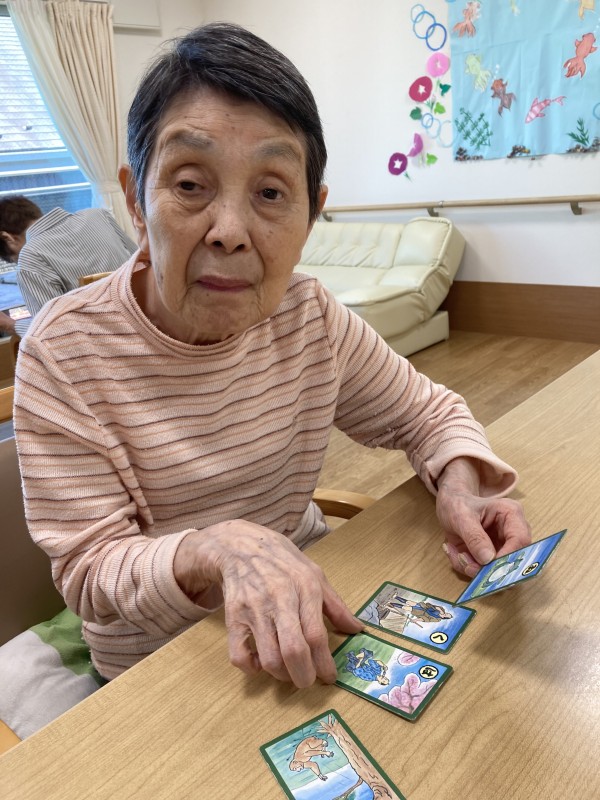 こちらの太陽マークの利用者様は札を読む専門で、いろはかるたの上の句をスタッフが読むと下の句を暗記されておりますので、スラスラとお読みになって下さりました!