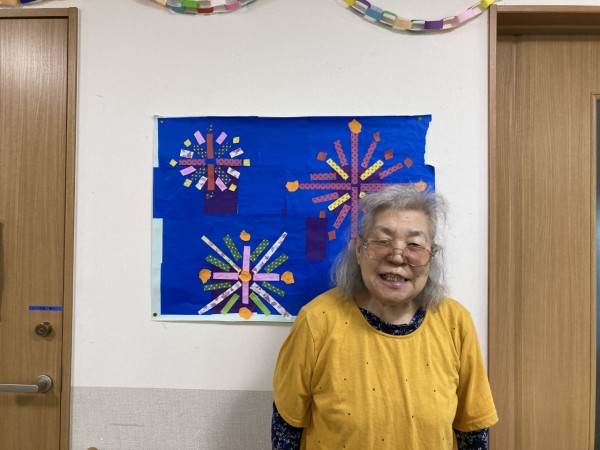 今回のレクレーションで、皆さんと一緒に折り紙で”花火”を作ってみました(^^♪