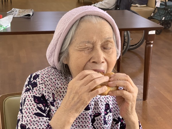 あんぱんを食しながら待つ入居者様も。