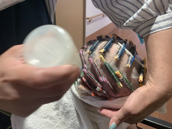 こちらは、ヘアカラーとパーマの放置時間の入居者様。