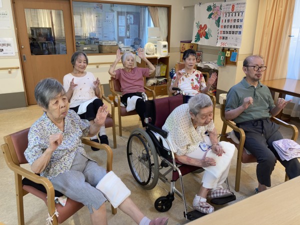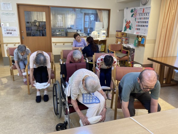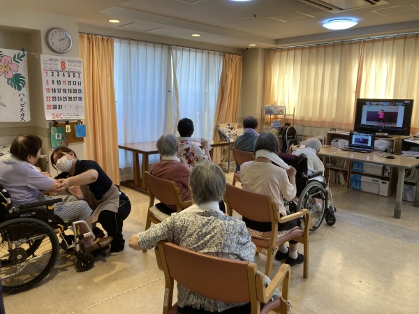 8月6日 リモート体操教室で≪タオル体操≫が行われました!真剣な表情で熱心に参加されていますね。