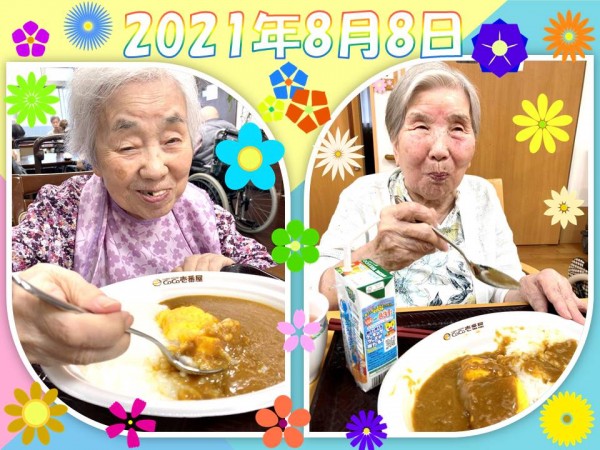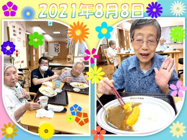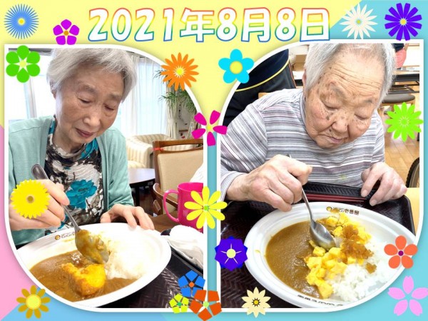 入居者様に感想をお伺いすると『美味しい』『辛くなくて食べやすい』『久々の(*ノωノ)』『あなたも食べる?』とのことでした。