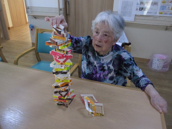皆様上手に高く積み上げ、頭と同じ位の高さになりました。