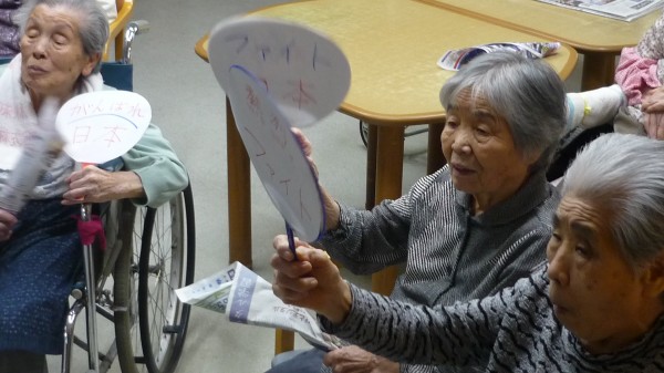 1階の入居者様も、興味深々で見入っていた競技があり、翌日の決勝は皆で観戦することになりました!