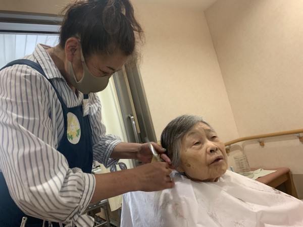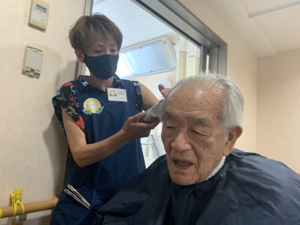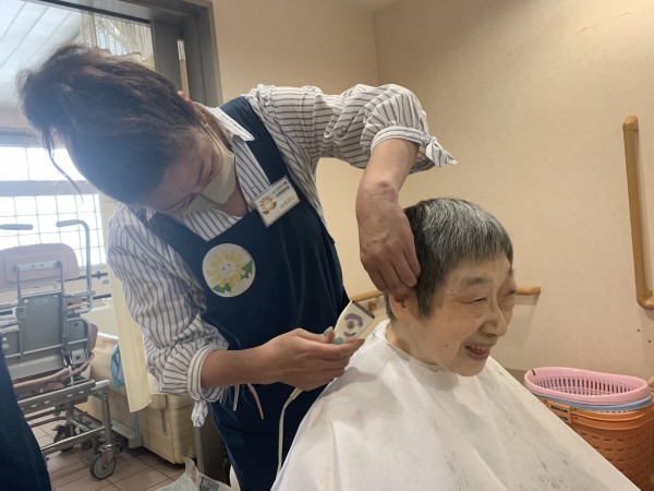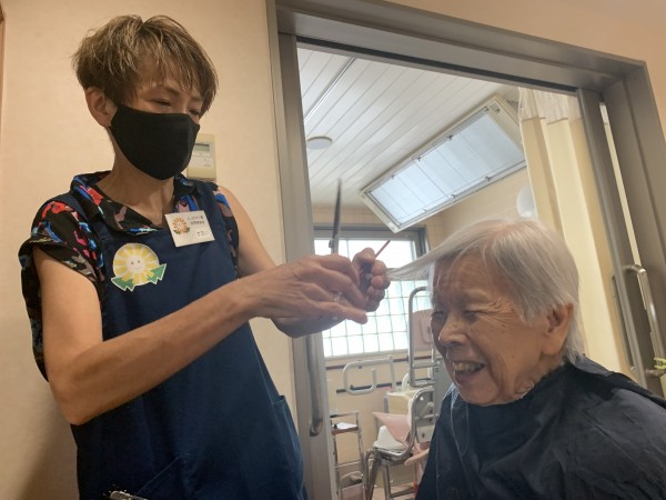 待ちに待った訪問理美容と会話で、入居者様の笑顔が沢山です。
