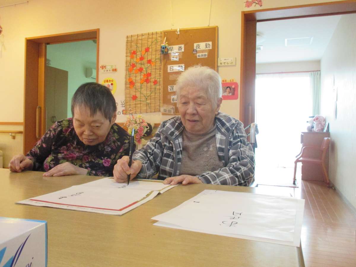 ホームの中では福笑いや書き初め・カルタ遊びなどをしてのんびり過ごしました!