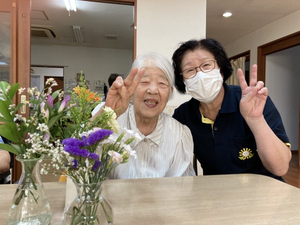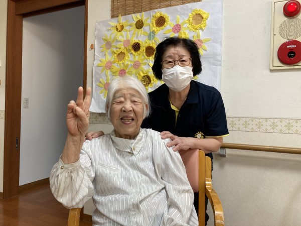写真の職員は入社して15年。隣の利用者様は入居されて15年。長いお付き合いです(#^.^#)