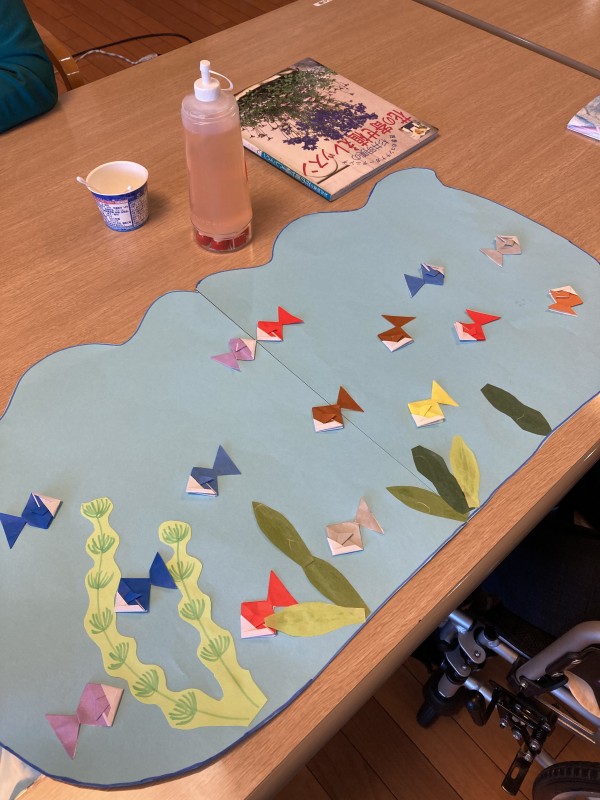金魚は、皆さまで折り紙で折りましたよ~。残念ながら、その写真は撮り忘れてしまいましたが・・・。