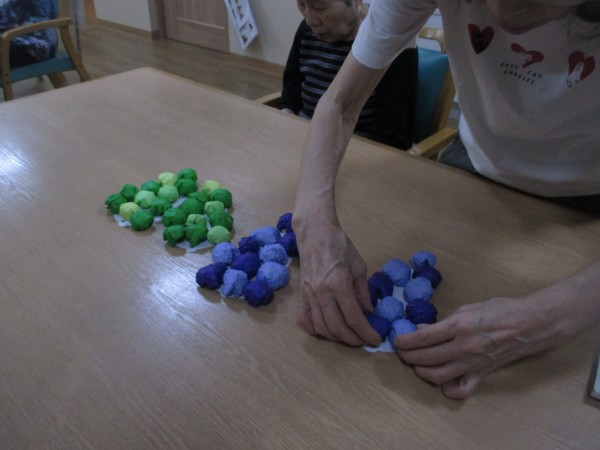 ご入居者様と一緒に色紙で立体的に作っていただいています。