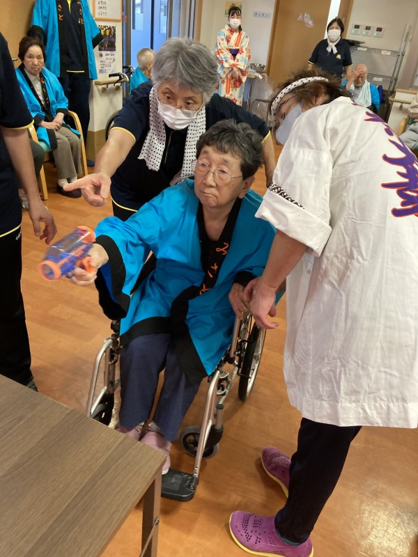 今年の納涼祭の縁日では、輪投げと射的ゲームを行いました( *´艸`)