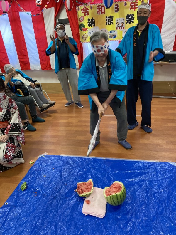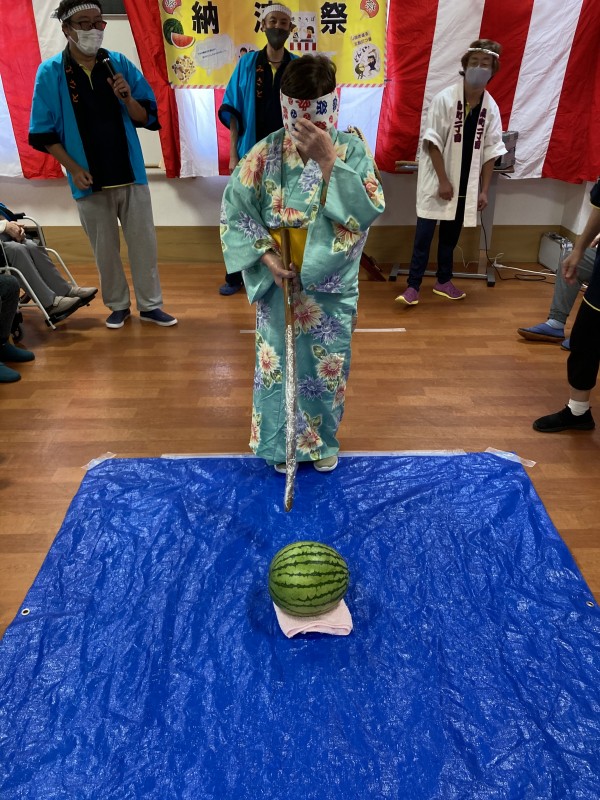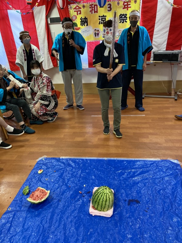 納涼祭の最後の演目には、スイカ割りを行いました(#^.^#)
