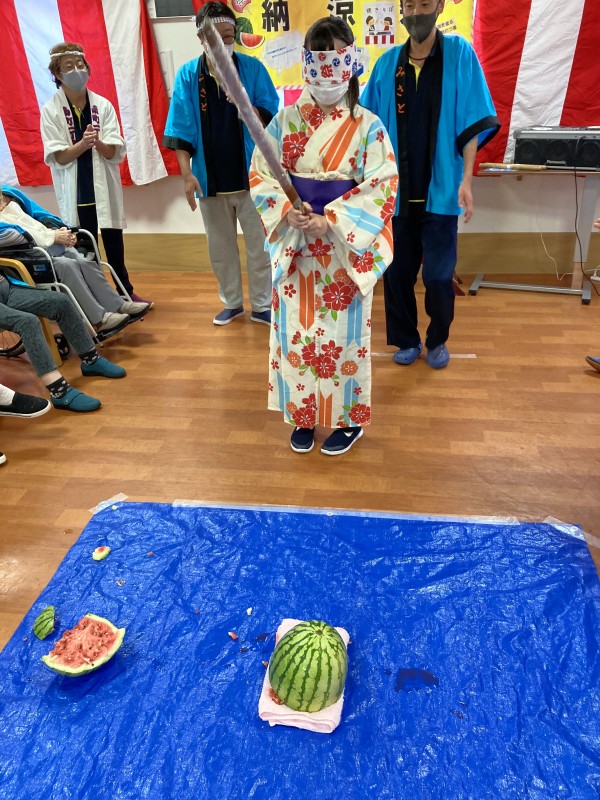 2階フロアのご利用者様がスイカ割り成功しました! 素晴らしいです(*'ω'*)