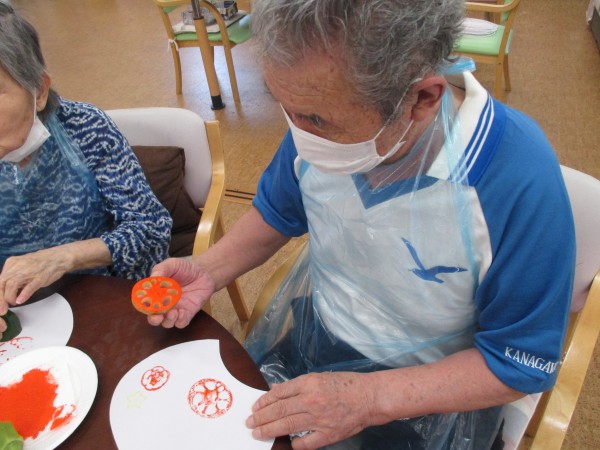 上手なお野菜の再利用(^^♪野菜を使ったうちわつくり。
