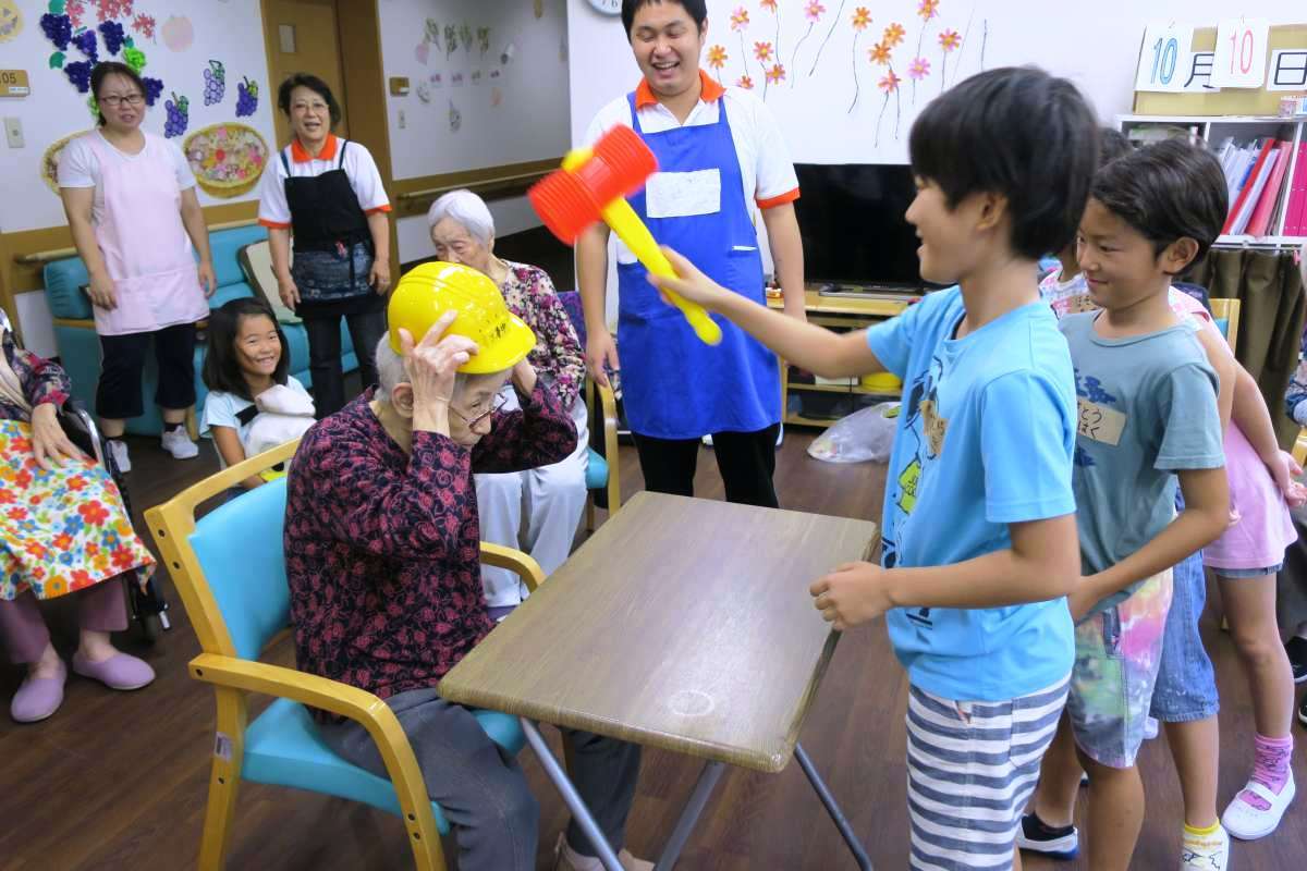 利用者様の年齢を聞いて、びっくりする子供たち。