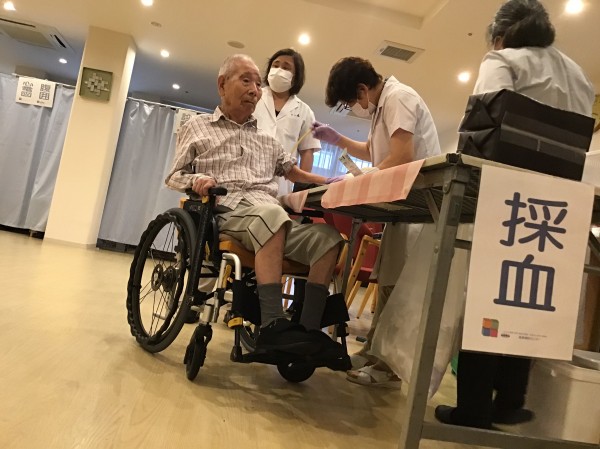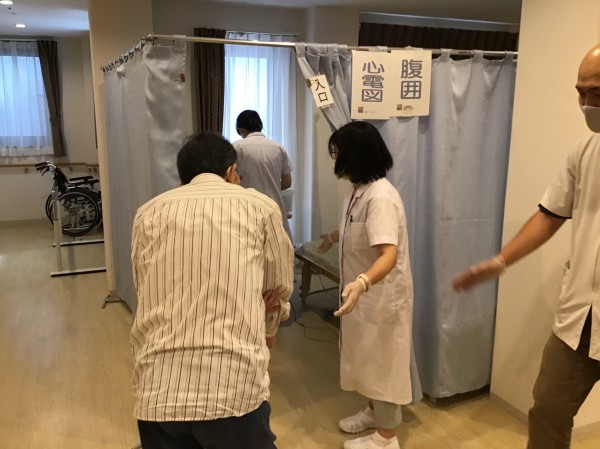 1階のフロアにて各ブースが作られ、血圧測定・心電図・採血・レントゲン撮影を行いました。