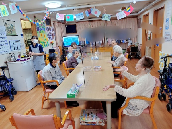 担当の先生をしてくれているケアリーダー。利用者様の言葉をとても嬉しそうに聞いていました。