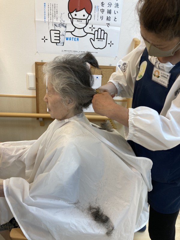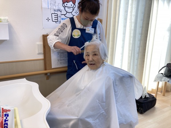 今月訪問理美容があり、みなさん髪を綺麗さっぱりにしてもらい