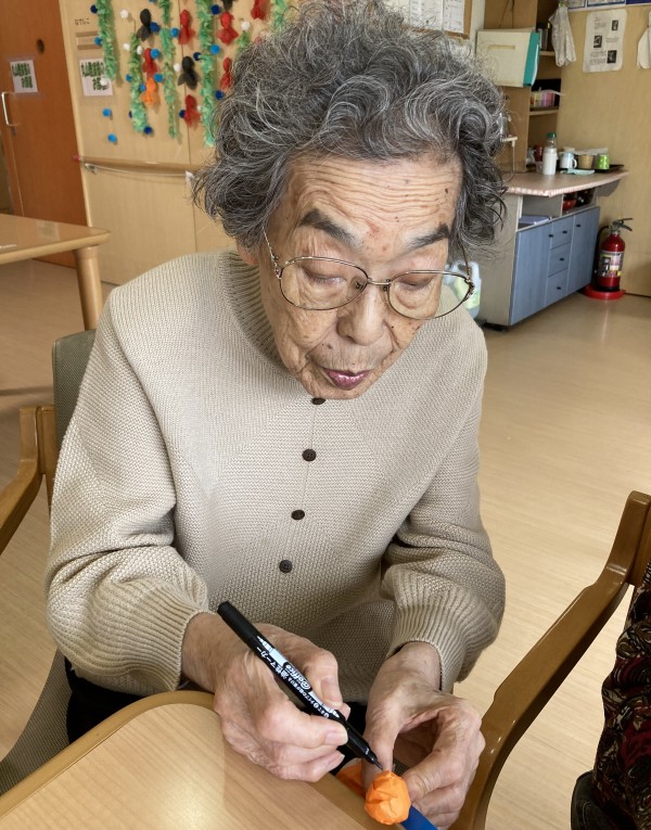 形ができたら、サインペンで顔を描きます。