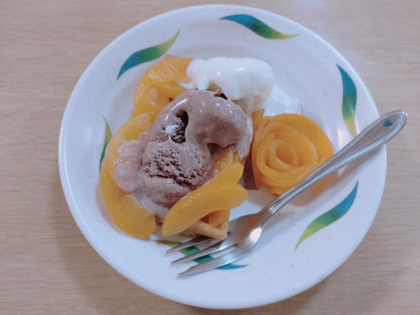 ハッピーバースデーソングを歌った後は、ワッフルに果物の杏を薔薇のように飾ったオシャレなワッフルを食べました!