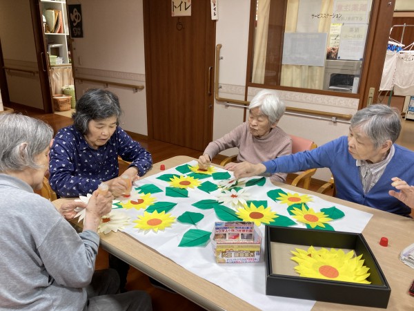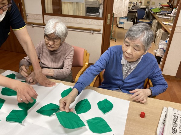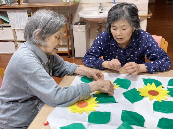 皆で貼り始めましたが『のりをつける人と貼る人に分けた方がいいんじゃない?』