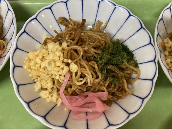 天かす、紅生姜、青のりと彩り豊かな簡単焼きそば、出来上がり~!!!