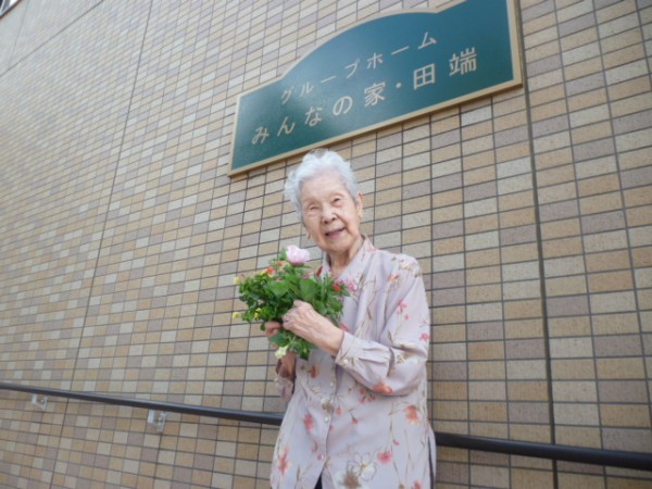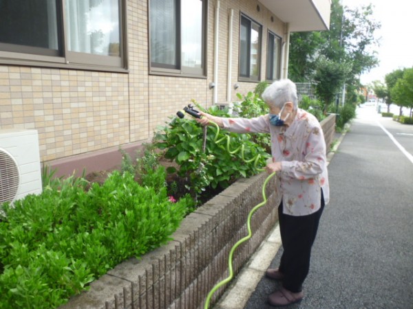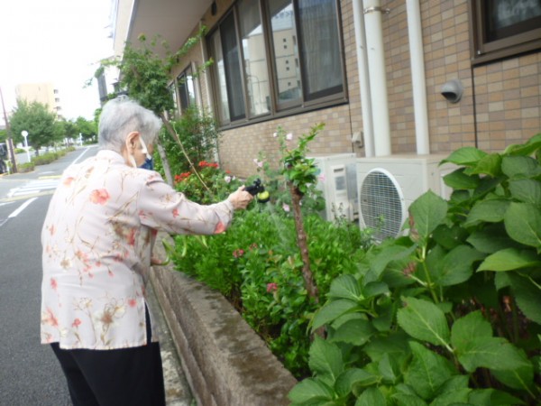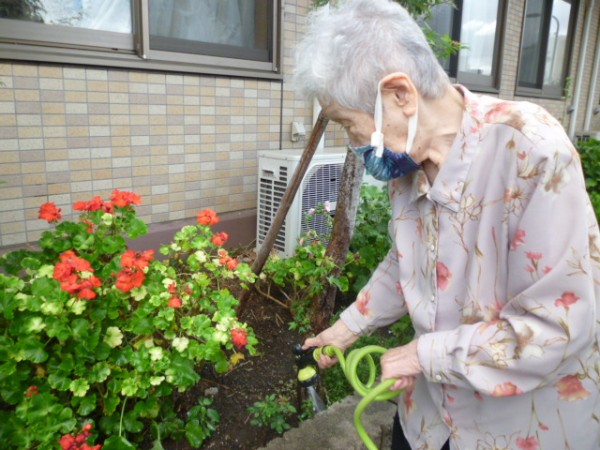 とても気持ちの良い日で久しぶりに外の空気に触れました。慣れた手つきで、一生懸命お花に水をあげてくださいました。「お花も土も喜んでるね!」