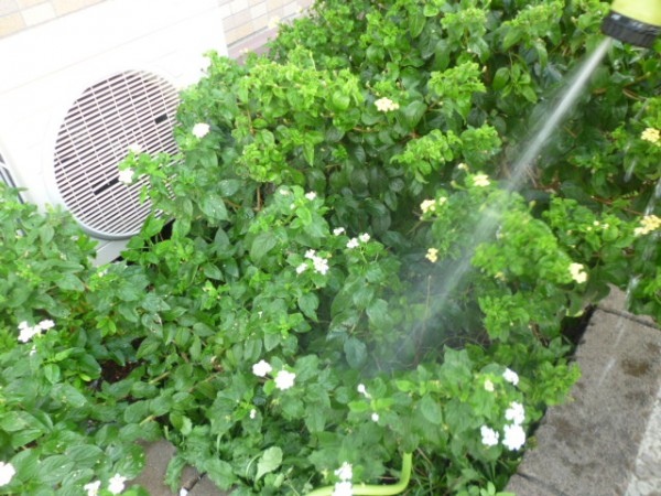 先日、久しぶりにお天気になり、気持ち良い風の日に花壇の水撒きをしました‼