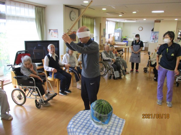 夏の暑さを吹っ飛ばす、スイカ割りの開催です。