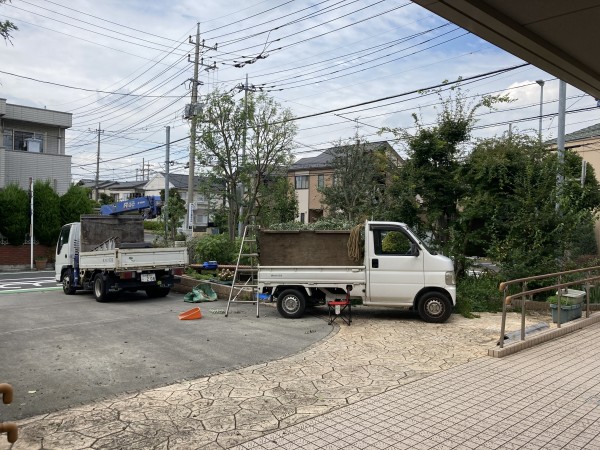 いつも大変お世話になっております。介護付有料老人ホームみんなの家・東浦和3です。きょうは敷地内の庭木の剪定をしていただきました。毎年この時期に建物のオーナー様が植木屋さんにお願いしてやってくださっているそうです。ありがとうございます。日当りが良いので庭木が結構育つようです。きょうは朝から職人さんが繁った庭木をばさばさと気持ちよく刈り込んでおりました。