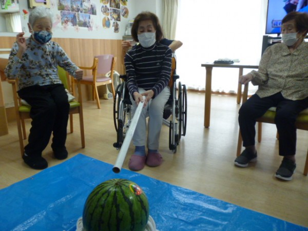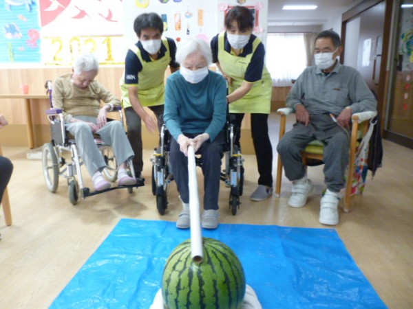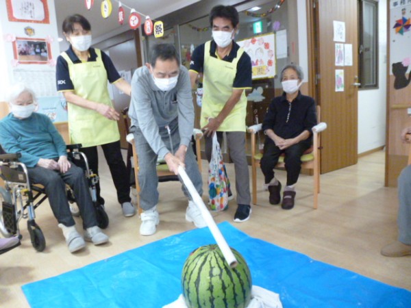 ♦♦♦納涼祭♦♦♦ part1 すいか割り大会 みんなの家田端2階の介護ブログ