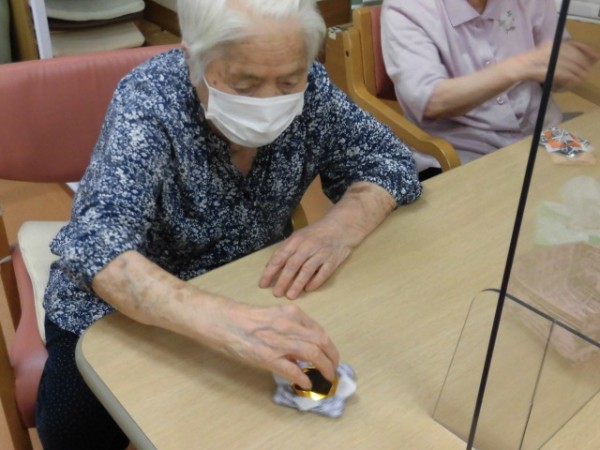 本日は「コマ回しゲーム」という初めてのレクリエーションを行いました!