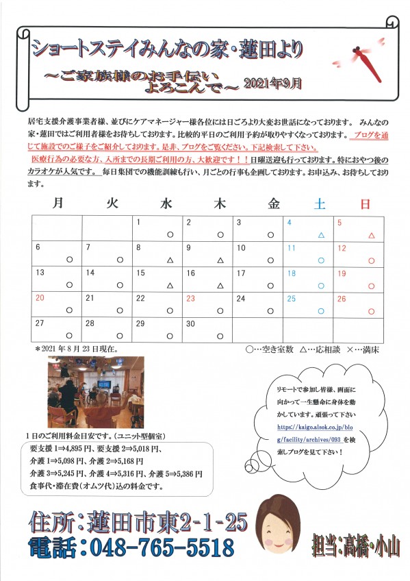 ショートステイみんなの家・蓮田のブログも是非、ご覧ください。