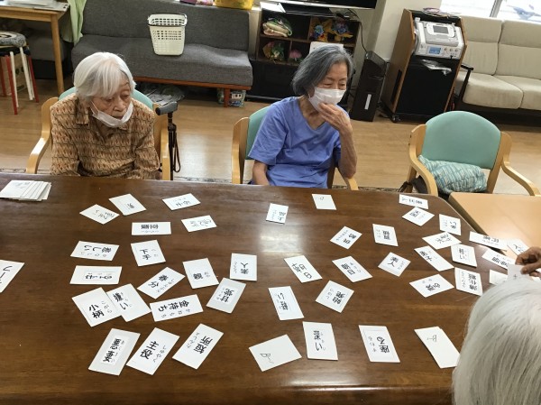 札を読み上げて、反対の意味の札を見つけるゲームです♬