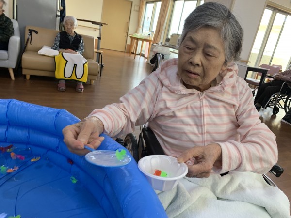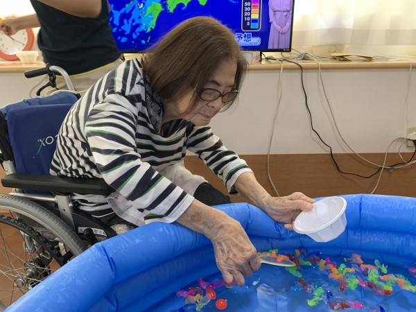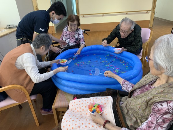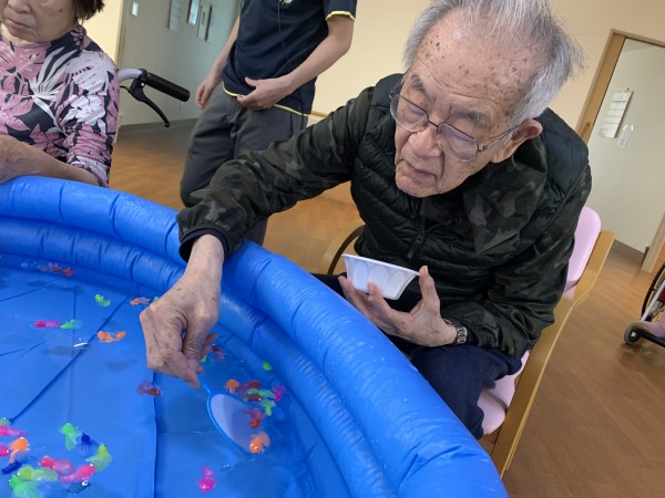 ゴム金魚すくいを、入居者様は随分と楽しんでくれました。