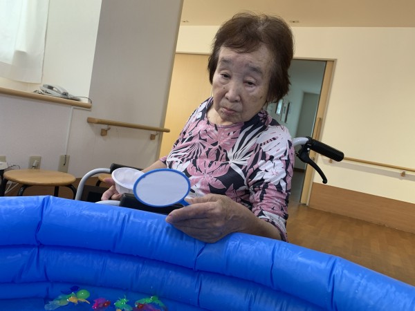 入居者様は、カップいっぱいに金魚をすくうのです。