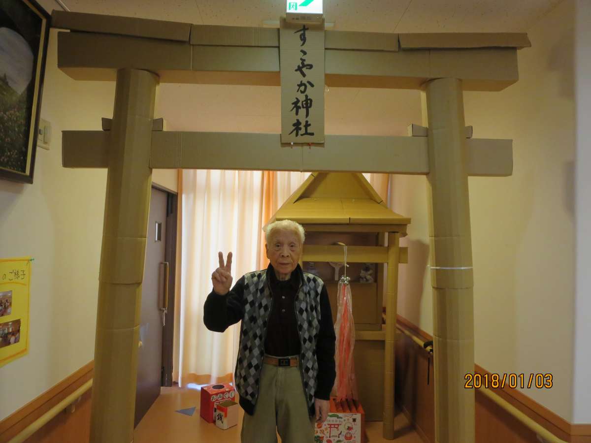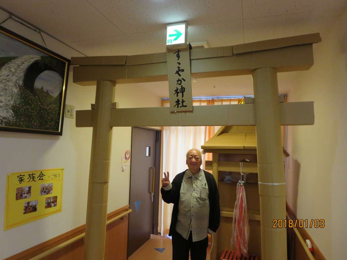 今日は、3階のご利用者様がすこやか神社で